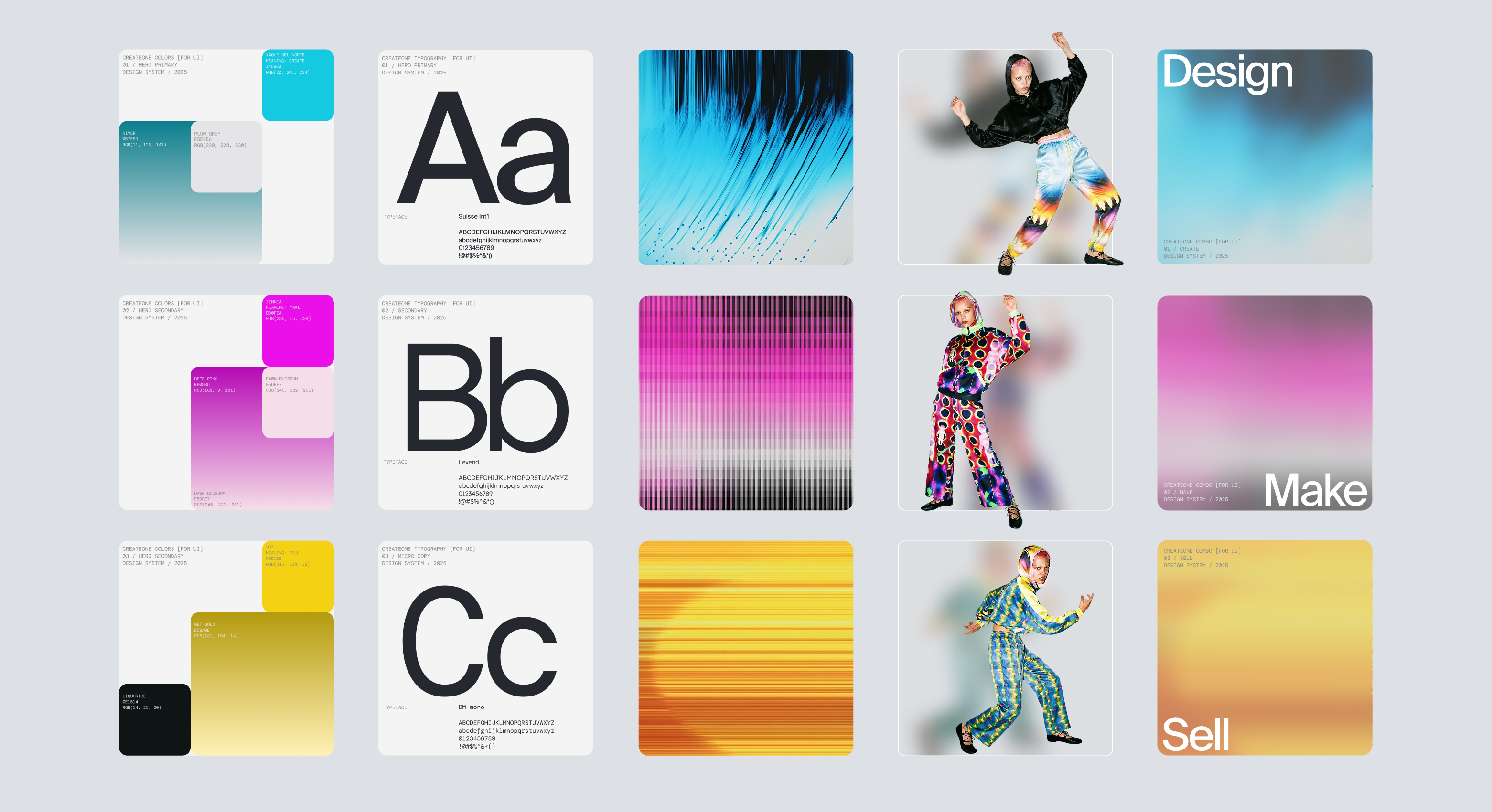 CreateOne is Resonance's creator platform where fashion designers create, sell, and verify ownership of their designs globally. The design system fuses print production visuals (CMYK color, calibration marks) and game interfaces (glass overlays, gradients, breaking boundaries) to make the platform a creative studio, not business software.